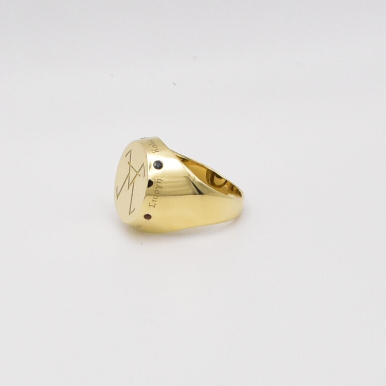 Une fois la chevalière formée, vient l’étape de la personnalisation, celle qui lui donne toute son âme. Sur la surface soigneusement polie, j’y fais graver le logo unique imaginé par mon client, symbole de son histoire et de sa personnalité.